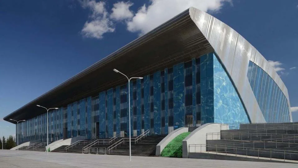 Завершенный весной 2023 года, Дворец спорта в Екатеринбурге представляет собой не просто спортивный объект с тремя большими чашами бассейнов (50, 50 и 25 метров), но спортивно-зрелищный. Общая вместимость трибун — более 5000 зрительских мест. Как рассказал Тимур Абдуллаев, самым сложным в таких проектах является соблюдение международных требований FISU для проведения соревнований, которые жестко регламентируют разведение потоков разных категорий посетителей – спортсменов, зрителей, судей, персонала. Как следствие, здание имеет сложнейшую логистику: на первом уровне находятся входы в здание для спортсменов, судей, персонала и прессы. А входы для зрителей организованы со второго яруса, с открытых пешеходных галерей, расположенных вдоль протяженных фасадов. Поскольку здание строилось для Универсиады, но с тем, чтобы потом стать спортивным ядром нового жилого района, в нем заложены сразу две программы: как центра для международных соревнований, так и спортивного комплекса для массового спорта. Спорткомплекс вошел в состав деревни Международного фестиваля университетского спорта, генеральным подрядчиком строительства которой выступила компания «Синара-Девелопмент». Строительство Дворца водных видов спорта возглавил «Атомстройкомплекс».