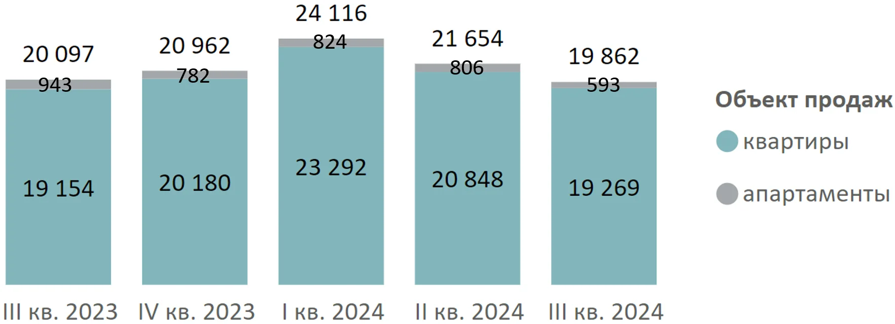 С окончанием действия программы ипотеки с господдержкой уровень спроса в III квартале 2024 года просел на 36,6% по сравнению со II кварталом и составил 5,7 тыс. ДДУ. Однако в сентябре было зарегистрировано на 23,1% сделок больше (1,8 тыс. ДДУ), чем в августе (1,5 тыс. ДДУ).