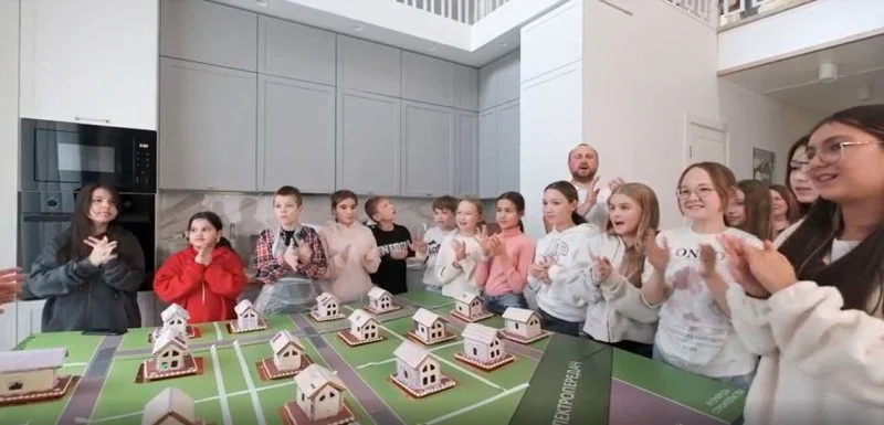 После небольшого перерыва и подготовки соответствующего реквизита ребята вернулись к практической части — изготовлению пряничных домиков. Каждый участник получил заготовки для создания мини-домов, которые они склеивали с помощью специальной пищевой мастики, заодно придумывая, как сделать свои домики уникальными и красивыми. Эта часть мероприятия была особенно увлекательной для детей, ведь они могли проявить фантазию и почувствовать себя настоящими строителями. Не все получалось с первого раза, но в итоге каждый создал свой самый красивый и вкусный дом. Когда «академиками» был собран стенд с нанесенным на него земельными участками, юные архитекторы узнали, что же такое архитектурный код поселка, и совместно произвели «нарезку участков», обозначив их границы специальной лентой, а потом разработали общий проект поселка, определяя расположение домов, прогулочных зон и общественных мест. Работа в группе позволила каждому ребенку почувствовать себя архитектором, проектирующим пространство для жизни, что вызвало живой интерес.
