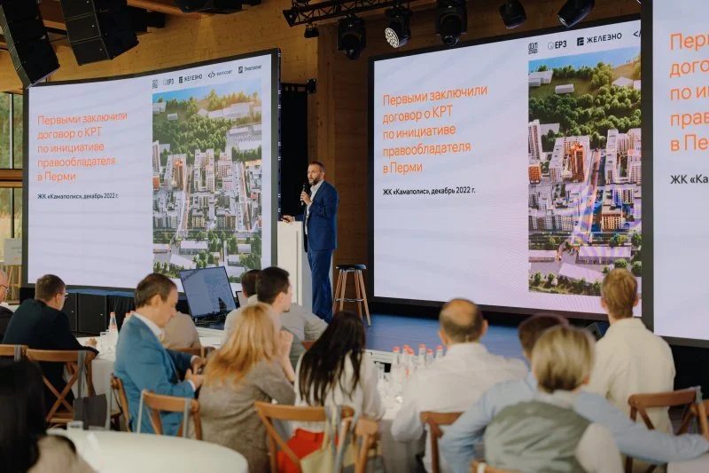 Сейчас компания «Железно» вышла на федеральный уровень развития, когда более 50% реализуемых ею проектов — это проекты КРТ. «Они позволяют решить вопросы, которые мы не всегда могли решить до появления соответствующего федерального закона, когда обязательства застройщика суммируются с обязательствами региона либо муниципалитета по задачам, которые надо решить для успешной реализации какого-либо проекта», — отметил Юрий Захаров, приведя в пример собственный флагманский проект «Знак», который уже в процессе застройки приходилось неоднократно трансформировать. «Мы даже один раз остановили реализацию проекта, когда поняли, что надо поменять структуру планировки, потому что так будет лучше, — сказал он. — Переделали ее, когда поняли, что структура квартальной застройки должна быть несколько иной, лучше для наших жителей. И эта история уже не про архитектуру и не про озеленение, а про некие научные знания, связанные с тем, как люди себя чувствуют в той или иной среде».