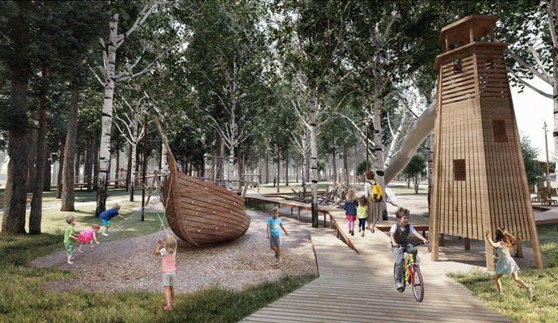 За два строительных сезона здесь появились бетонные и деревянные дорожки, молодежный павильон «Клетка» с амфитеатром, несколько спортивных площадок, «Лесная тропа», арки при входе, информационные стенды, событийная площадь, сцена, малые архитектурные формы. Также было проведено освещение и дополнительное озеленение. Учитывая, что в саду существовали открытые пространства без деревьев, разместить все эти функциональные зоны удалось без вырубки сосен. Торжественное открытие обновленного городского сада состоялось в июне.