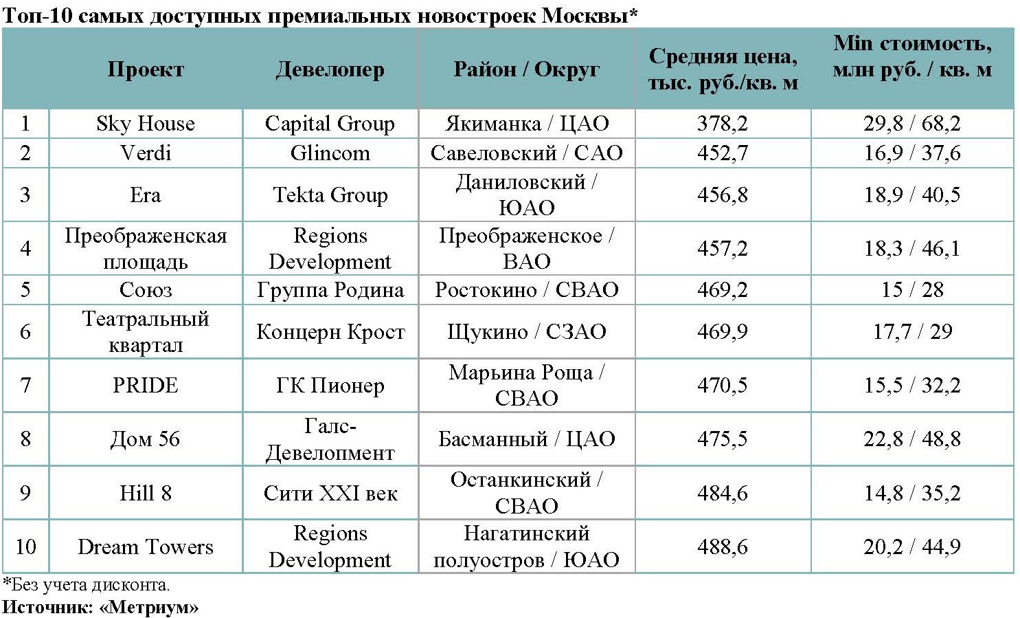 «Самые недорогие квартиры можно найти в жилом комплексе Sky House (Якиманка, ЦАО). Это долгострой, который в разное время реализовывали несколько девелоперов, а ввела в эксплуатацию компания Capital Group. Проект состоит из четырех корпусов высотой от 22 до 29 этажей. Его главное преимущество – соседство с Третьяковской галереей, музеем Есенина и музеем современного искусства «Гараж». Квадратный метр в Sky House обойдется в среднем в 378,2 тыс. рублей», - сообщили в компании «Метриум».