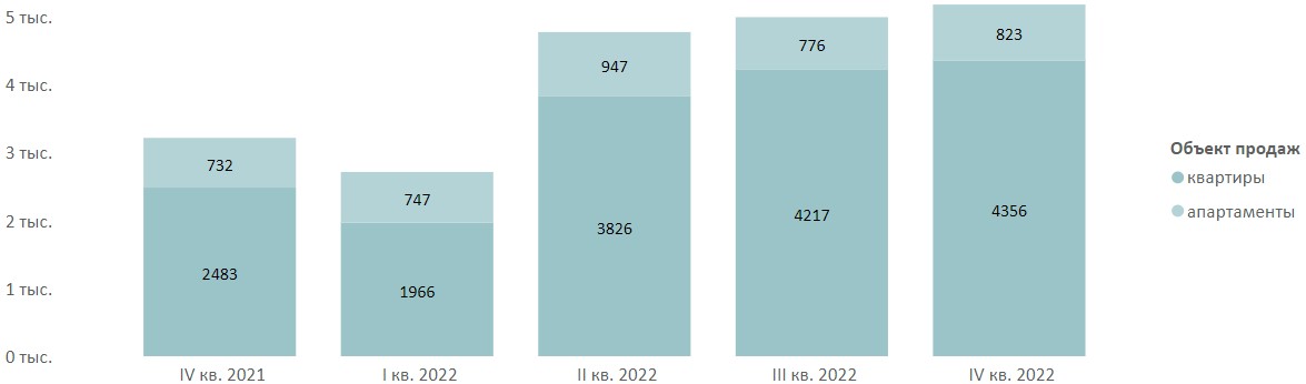 Количество зарегистрированных сделок на первичном рынке премиального сегмента в 2022 году составило почти 3,2 тыс. штук. По сравнению с 2021 годом, активность покупателей снизилась на 27,7%. Однако стоит принять во внимание, что 2021 год отличался нехарактерно высокими темпами спроса. По сравнению с 2020 годом, 2022 год стал более успешным: количество договоров выросло более чем в два раза.