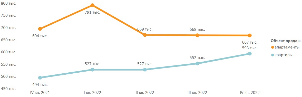 Средний бюджет предложения за год увеличилась всего на 1,2%. Квартиры и апартаменты в сегменте стали компактнее: показатель средней площади уменьшился с 86,6 кв. м до 80,4 кв. м. (-7,2% за год).