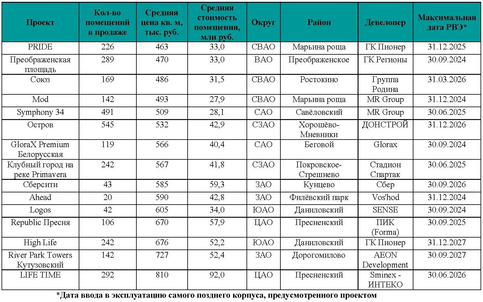 Самый доступный по цене проект – жилой комплекс Pride. Это квартал премиум-класса в историческом районе Москвы Марьина Роща, состоящий из отдельной стоящей 22-этажной башни и двух полузакрытых и среднеэтажных (от 7 до 22 этажей) урбан-блоков. На территории жилого квартала будет построена собственная школа и детский сад. В среднем стоимость квадратного метра в этом проекте оценивается в 463 тыс. рублей, а самая доступная квартира (студия площадью 30,7 кв. метров) обойдется в 15,2 млн рублей.