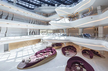 В 2020 году это многофункциональный комплекс The Opus, построенный по проекту британского бюро Zaha Hadid Architects (ZHA) в районе Бурдж-Халифа в Дубае (ОАЭ). Объект примечателен уже хотя бы тем, что был задуман самой Захой Хадид еще в 2007 году. Причем ее перу принадлежит на только внешний вид здания, но и интерьеры, получившиеся по-восточному богатыми. Да и сам проект был провозглашен «главным трудом ее жизни». Сроки окончания строительства комплекса переносились несколько раз, начиная с 2009 года. В результате возведение комплекса было завершено только в прошлом году, но за 13 лет «долгостроя» архитектура совсем не потеряла актуальности.