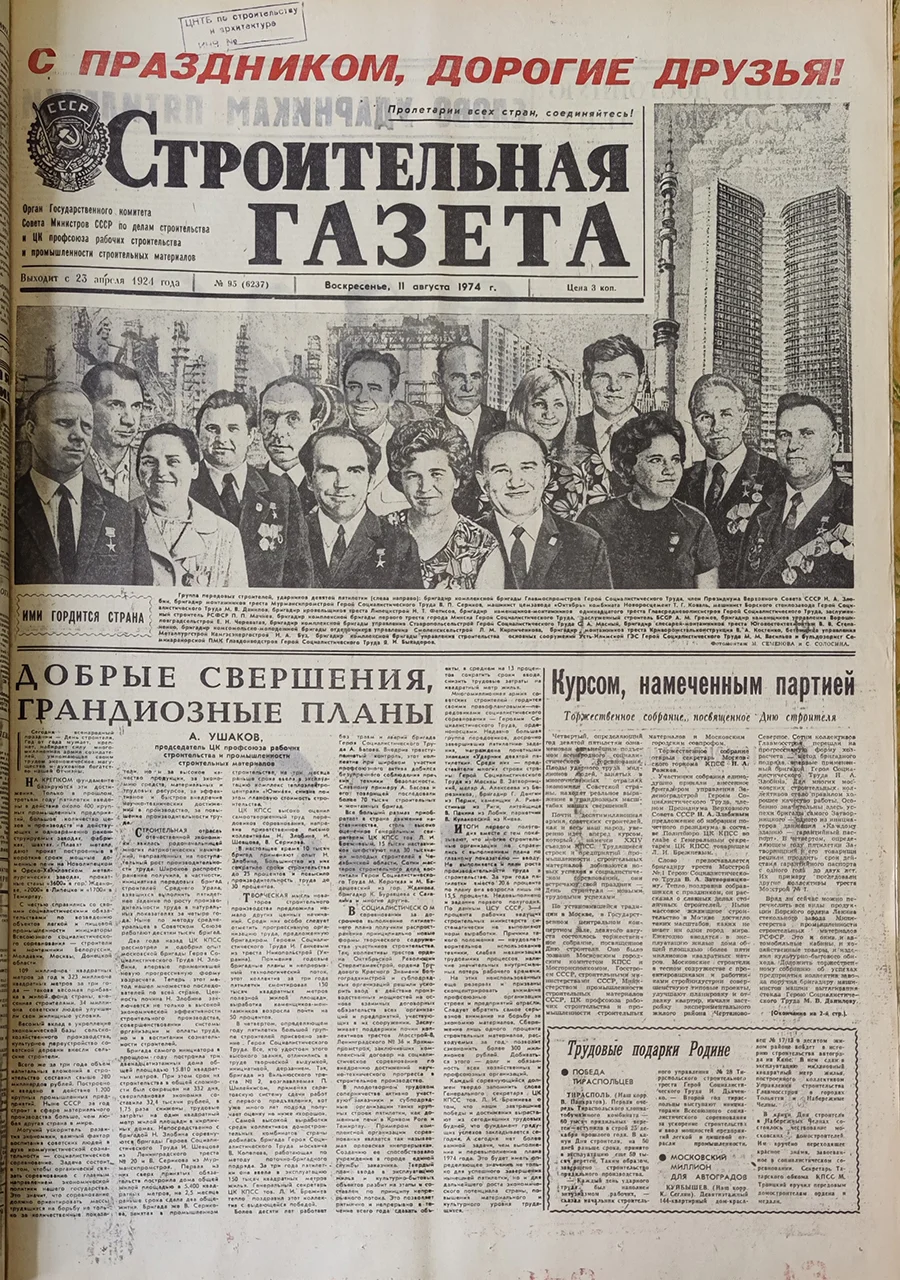 Фотографии архивных номеров «Строительной газеты» предоставлены Центральной научно-технической библиотекой по строительству и архитектуре (cntb-sa.ru)