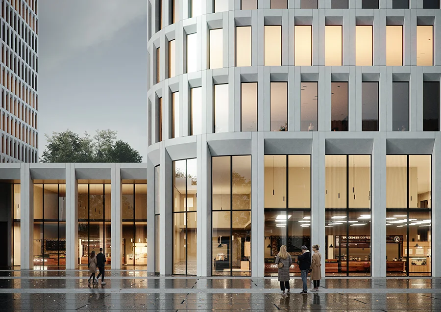 Концепция Healthy Building реализуется на всех уровнях STONE Towers на «Белорусской». Все четыре офисных здания запроектированы с учетом таких параметров, как уровень естественной освещенности, современные системы инженерии, позволяющие обеспечивать комфортный микроклимат, — именно они поддерживают здоровую атмосферу на рабочем месте и, как следствие, позволяют сотрудникам сохранять продуктивность в течение дня. Оптимальная глубина этажа и панорамные окна способствуют естественному освещению, в то время как специальное покрытие стекол предотвращает перегрев помещений в жаркое время года. Увеличенный шаг колонн позволяет создавать гибкие пространства внутри офиса. «Здоровая архитектурная среда» будет и на городском уровне — внешний облик офисных башен создает визуальное разнообразие, как в европейском городе. Авторы проекта Александр Цимайло и Николай Ляшенко говорят, что в проекте STONE Towers они стремились объединить в единый ансамбль здания с разнообразной архитектурой. Каждая башня имеет свое «лицо» и индивидуальность, однако благодаря повторяющейся структуре фасадов и общему благоустройству удалось создать комплекс, который будет жить как единый организм.