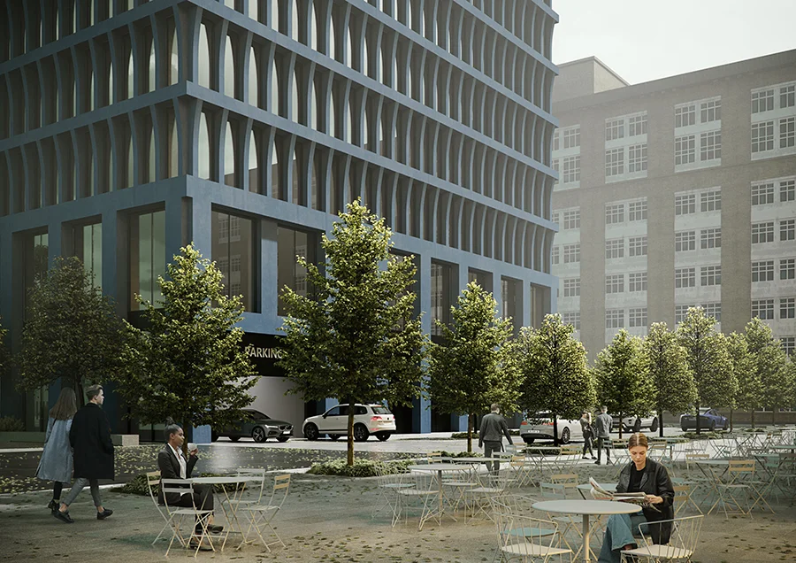 Задача девелопера была в том, чтобы создать городской кластер, который станет новым местом притяжения и будет жить и функционировать в любое время суток. И парк здесь играет ключевую роль: он станет центральной частью благоустройства и позволит органично связать офисную среду с городской. Открытое общественное пространство разделят на несколько функциональных зон. Ключевая роль при их формировании отдана бульварам, призванным связать в единое целое территорию и направить пешеходные потоки. Главным местом для отдыха и общения станет сквер с мощеной площадью. Здесь в окружении зеленых островков разместятся скамейки, а в глубине сквера расположатся павильоны, оборудованные местами для работы и зарядными устройствами для гаджетов.
