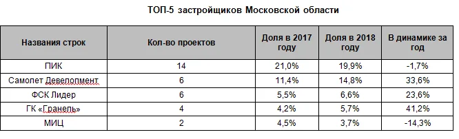 По итогам первого полугодия 2018 года 50,7% от объема продаж в новостройках Московской области пришлос на пять застройщиков. Основное строительство в Подмосковье сосредоточено на расстоянии до 30 км от МКАД.