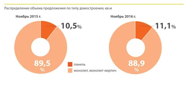 -небольшой рост доли объема предложения в панельных домах, несмотря на подавляющее большинство проектов, строящихся по монолитной технологии.