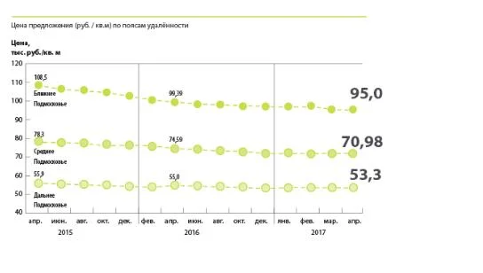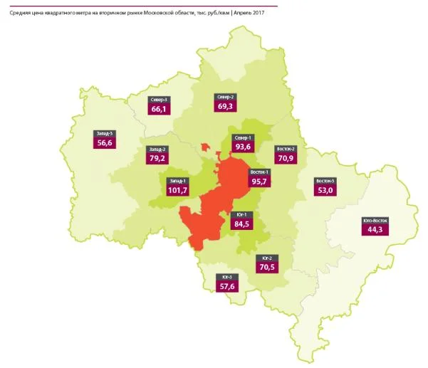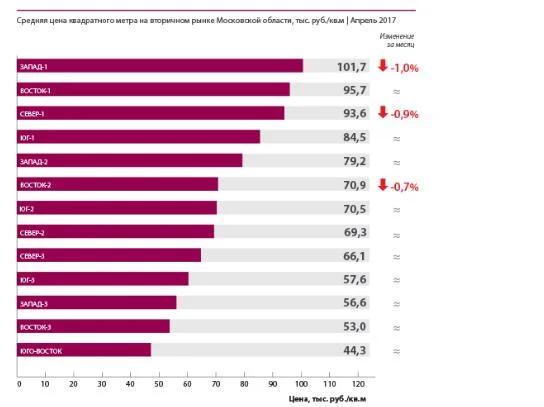 ближнее Подмосковье: 94 980 руб./кв. м (-0,8% к марту),