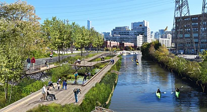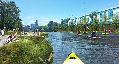 Архитектурное бюро Skidmore, Owings & Merrill недавно представило проект плавучего парка, который появится в Чикаго между одноименной рекой и Северной авеню. Создание в этом месте парка было предусмотрено генеральным планом развития северной части города 2017 года. Плавучий парк, получивший название «Дикая миля Чикаго» (Wild Mile Chicago), призван решить две важные задачи. Первая — градостроительная — состоит в более тесной интеграции в городскую структуру территорий, прилегающих к North Branch Chanel — обводному каналу, построенному в середине XIX века для нужд промышленности города. Вторая задача — экологическая. Парк должен помочь очистке воды и созданию зеленого оазиса. Река Чикаго особой чистотой не отличается, и разработчики проекта «Дикая миля» хотят изменить положение. Предполагается, что речная вода будет протекать через экопарк и омывать корни растений, которые будут играть роль естественного фильтра, задерживающего различный мусор и вредные вещества. Участники проекта — городские власти, группа Urban Rivers (благотворительная экологическая организация), архбюро Chicago и Skidmore, Owings & Merrill. Как ожидается, проект экопарка будет утвержден к концу марта, а завершить его строительство планируется к середине 2020 года. Парк длиною в милю будет строиться совместно с частными девелоперами.