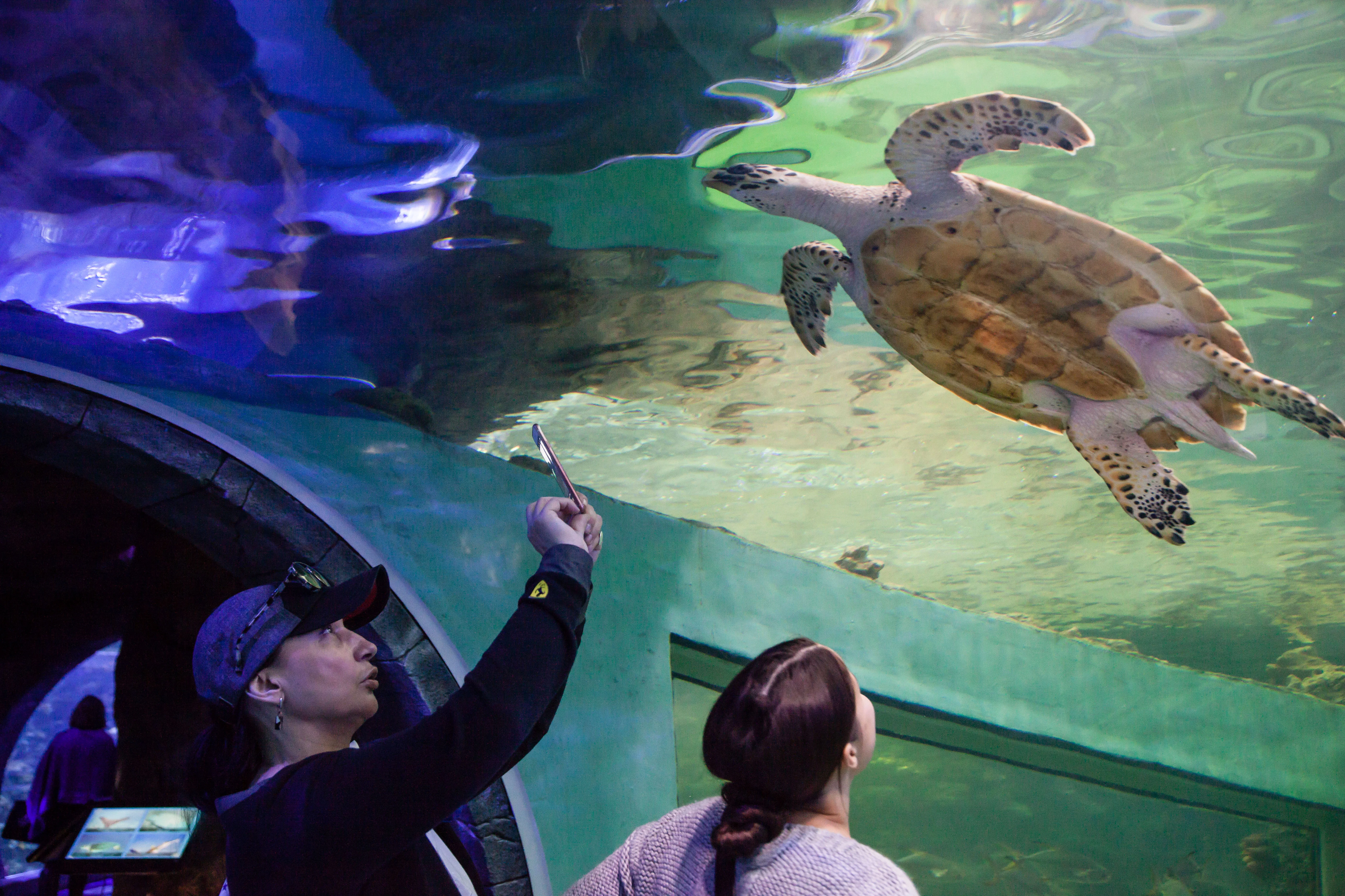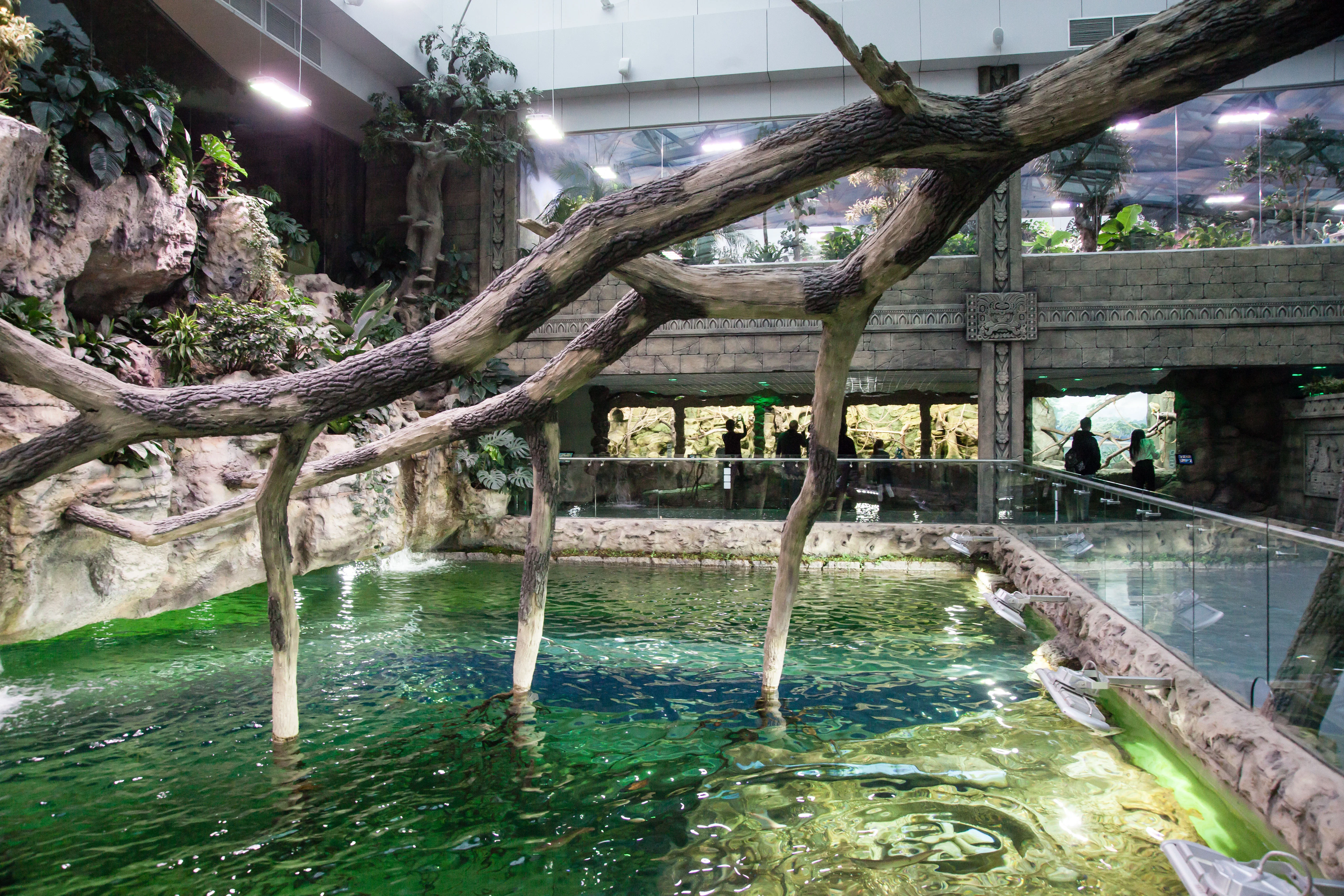 В зоне «Моря и океаны» также находится дайвинг-центр – здесь можно плавать вместе с морскими обитателями.