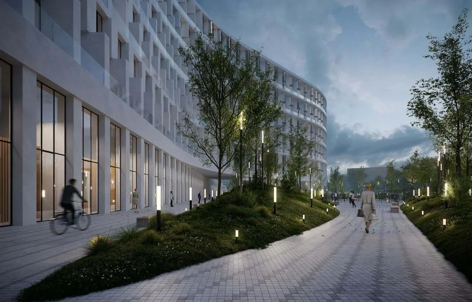Общественная зона между зданиями будет разделена по функционалу. Для резидентов клубного дома предусмотрен прогулочный парк, для сотрудников офисов — отдельная территория для общения на свежем воздухе.