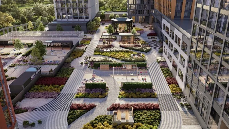 Жилой комплекс бизнес-класса INDY Towers расположится в Хорошевском районе Москвы. Благоустройство объекта займет 74% участка застройки и будет разделено на три концептуальные зоны: «Сад цветущих сезонов», «Водный сад» и «Сад игр». Одним из элементов внутренней территории станет авиарий для певчих птиц и тропических растений.