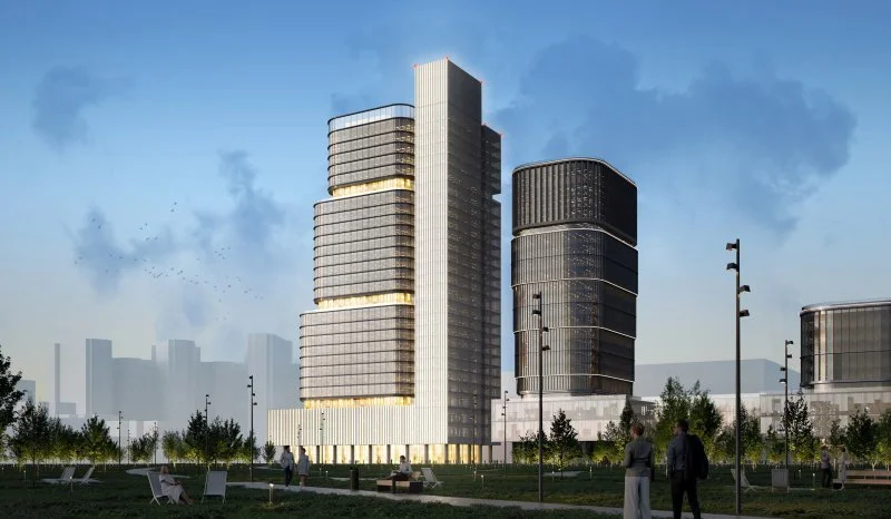 «Максимальная высотная отметка офисной башни составит 150 метров, что позволит объекту стать одной из новых архитектурных доминант района. Основной объем офисов будет представлен тремя ступенчатыми блоками, опоясанными стеклянными этажами с террасами. Фасады в этих объемах имеют плотный графический рисунок, созданный сочетанием панорамного остекления и ламелей», – рассказал главный архитектор Москвы Сергей Кузнецов.