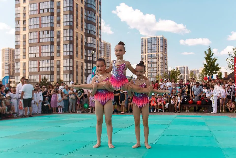 После него гостей ждали яркий флешмоб, выступление спортсменок по художественной гимнастике, показательные выступления каратистов и танцевальные номера. В течение всего праздника все желающие (и дети, и взрослые) участвовали в различных конкурсах и играх, выигрывая призы от организаторов.