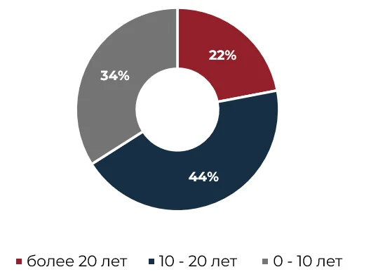 Наибольшая доля устаревших площадей зафиксирована в СЗАО: в реновации здесь нуждаются 418 тыс. кв. м из 542 тыс., или 77% общего объема. При этом значительная часть таких площадей приходится на крупноформатные объекты. ЮАО, напротив, отличается одной из самых качественных структур среди округов «старой» Москвы: 905 тыс. кв. м из 1 275 тыс., или 71% площадей, соответствуют современным требованиям. Такой результат во многом обеспечен вводом новых объектов – с 2016 года здесь открылись 17 торговых центров, в том числе «Ривьера» (GLA – 100 тыс. кв. м), «Каширская Плаза» (GLA – 71 тыс. кв. м) и «Остров мечты» (GLA – 70 тыс. кв. м).