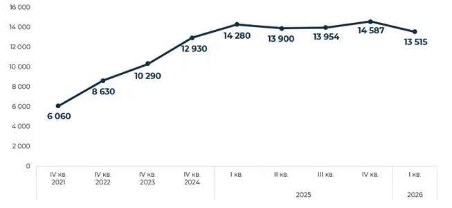 Доля вакантных площадей в существующих объектах Light Industrial по итогам I квартала составила около 10%. Для сравнения: по итогам 2024 года показатель находился на уровне 6%, а к концу 2025 года вырос до 14%, что отражало опережающие темпы увеличения предложения по сравнению со спросом. В начале 2026 года рынок продемонстрировал частичную коррекцию этого показателя.