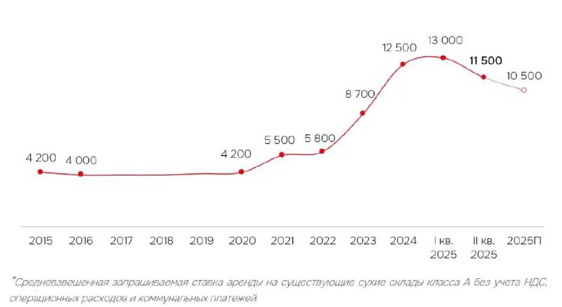 В Московском регионе по итогам II квартала 2025 года средневзвешенная запрашиваемая ставка аренды на сухие существующие складские объекты класса А составила 11,5 тыс. рублей в год за кв. метр. Об этом «Стройгазете» сообщили в пресс-службе IBC Real Estate, уточнив, что ставки снизились на 12% по сравнению с I кварталом 2024 года, составляла 13 тыс. рублей в год за кв. метр.