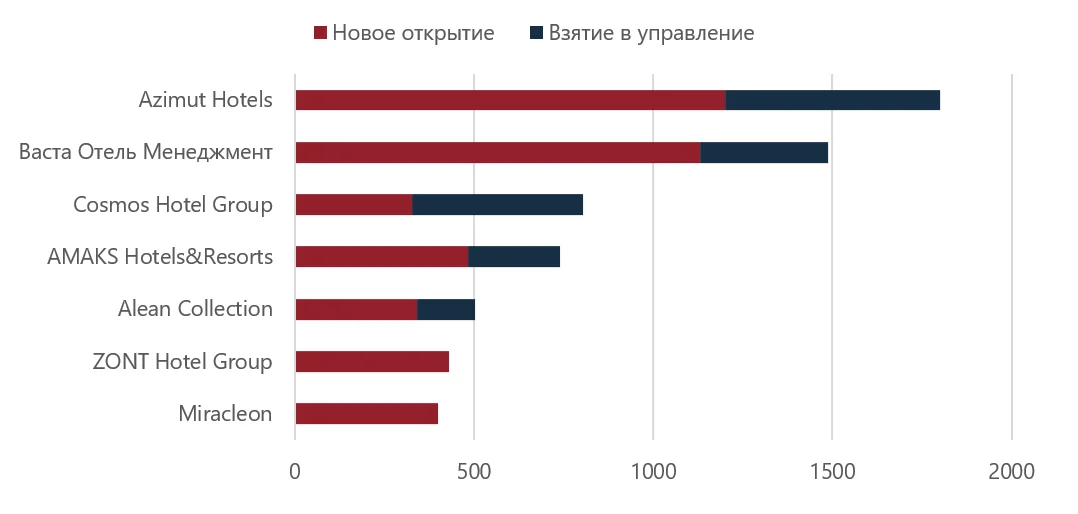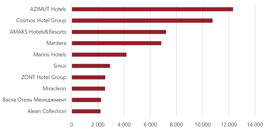 Наибольший прирост по итогам года показали: Azimut Hotels, «Васта Отель Менеджмент», Cosmos Hotel Group, AMAKS Hotels & Resorts, Alean Collection, ZONT Hotel Group и Miracleon.