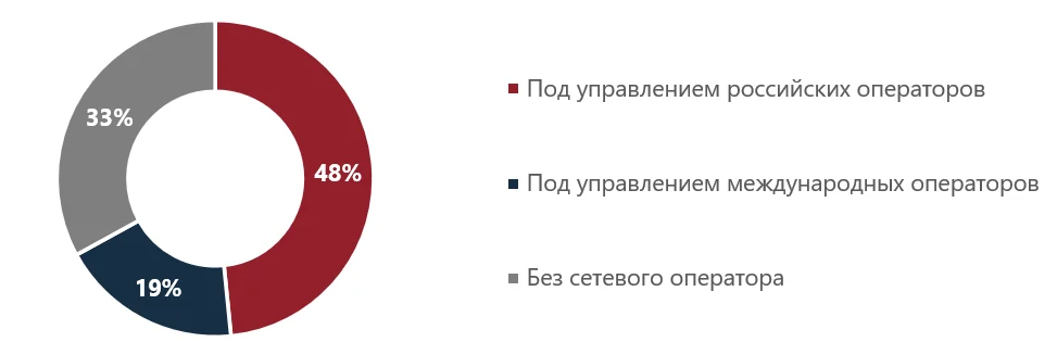 В 2025 году под управлением международных операторов открылся один объект – Radisson Hotel Пермь 5* на 156 номеров под управлением Radisson Hotel Group. На конец 2025 года доля номерного фонда, находящегося под управлением международных операторов, составляет 19%.