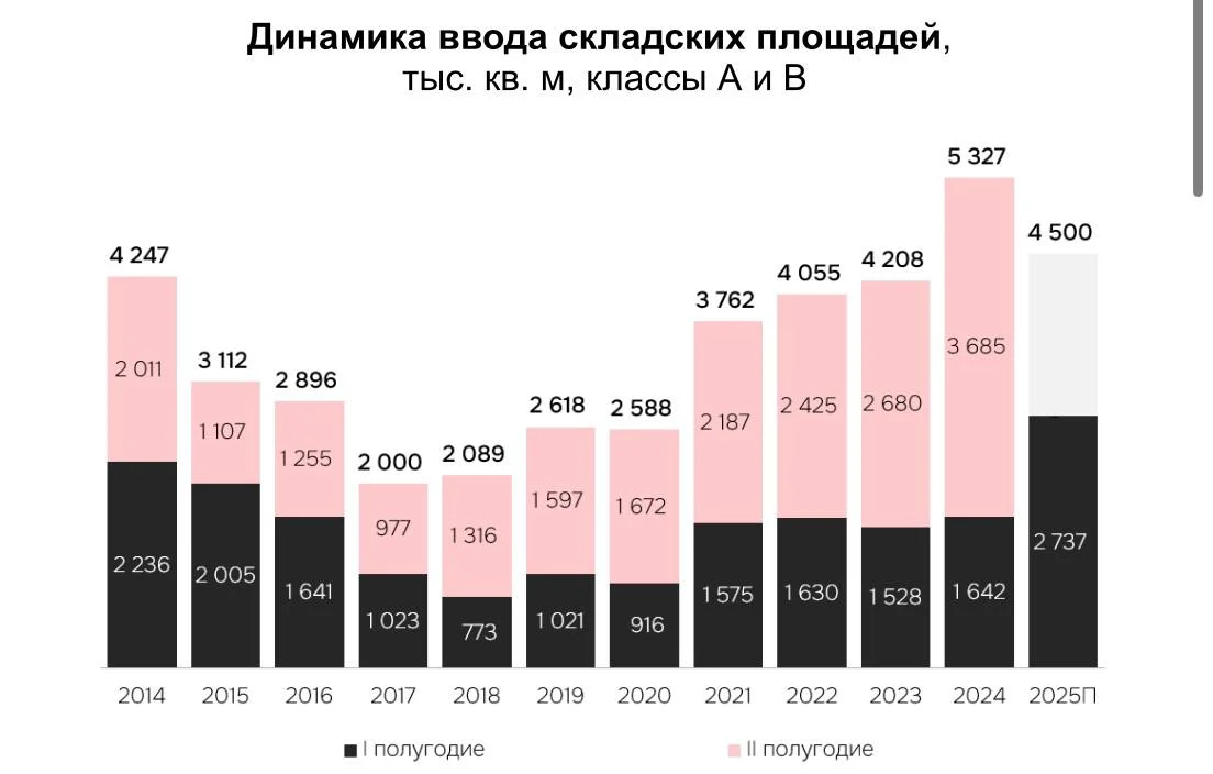 Руководитель департамента по работе со складскими и производственными помещениями IBC Real Estate Евгений Бумагин отметил, что рекордные объемы ввода по итогам I полугодия 2025 года стали ответной реакцией девелоперских компаний на рекордные показатели спроса в предыдущие два года.
