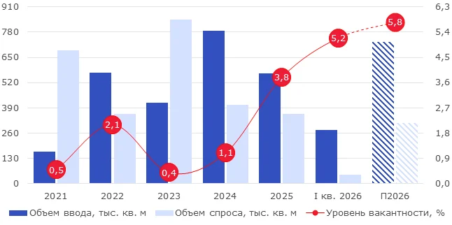 Такая динамика подтверждает переход рынка в фазу, где основными факторами становятся качество объекта, локация и гибкость коммерческих условий. По прогнозу экспертов, к концу 2026 года уровень вакантности может приблизиться к 5,8%, что станет максимальным значением за последние девять лет.