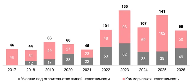 В пресс-службе уточнили, что несмотря на позитивные сдвиги в структуре распределения инвестиций, объем вложений в жилье за I квартал 2026 года не рекордный — в 2022–2023 годах показатели были выше за счет льготной ипотеки, стимулировавшей застройщиков скупать площадки. После отмены программы в середине 2024 года спрос снизился, что сократило число сделок. При этом за три года 2026 показал максимум — 49 млрд рублей против 39 млрд в 2025 году и 38 млрд в 2024 году.