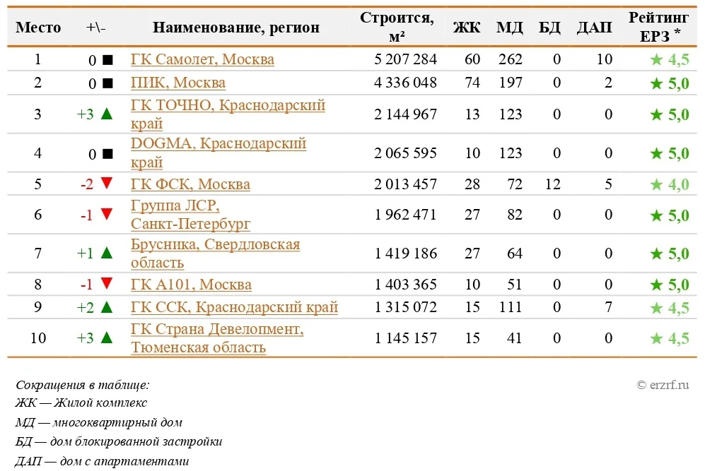 Топ 10 застройщиков РФ по объему текущего строительства