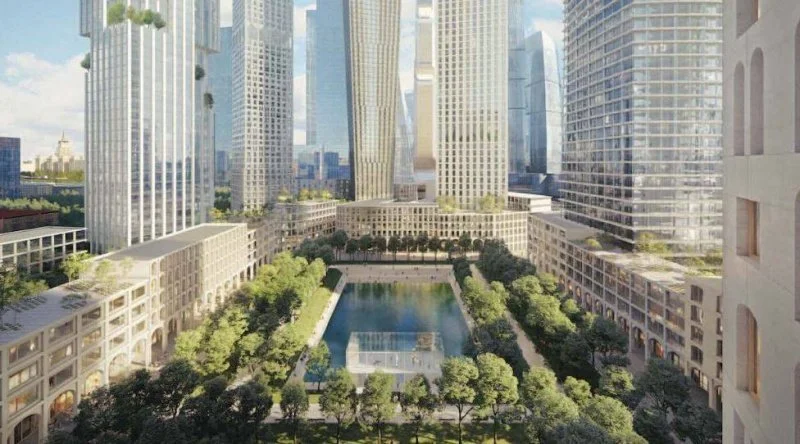Сам проект находится в «Сити-2», рядом с уже сформированной высотной застройкой «Сити-1» («Москва-Сити»). «Сити-2» будет представлять собой кварталы из невысоких урбан-блоков (4-7 этажей) с озелененными дворами и кровлями. Над урбан-блоками будут возвышаться свободно расставленные небоскребы разной высоты и архитектуры. Сердцем квартала «Сити-2» будет искусственный пруд с набережной, окруженной парком с кафе, ресторанами, магазинами. Под прудом будет расположен торговый центр.