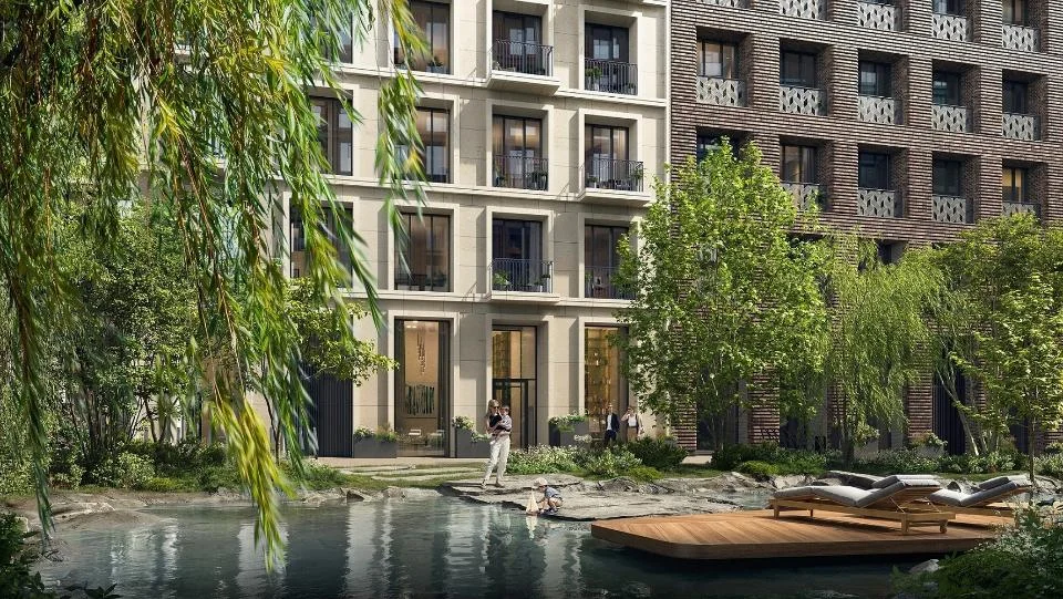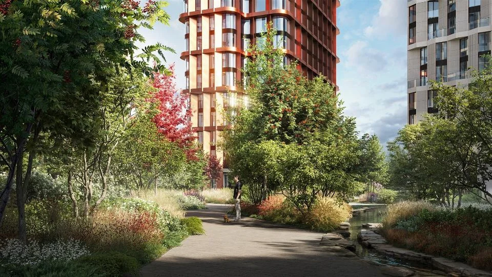 Площадь приватного двора-парка составит рекордные 2,1 гектара — 2/3 всей территории. Важной составляющей будет прогулочный бульвар протяженностью 300 метров. Он объединит три внутренних двора: Кленовый, Ивовый и Рябиновый — с концептуальным озеленением, а также шесть водных объектов, в том числе пруд с настилом для йоги, сухой фонтан и живописный ручей, который проходит через детскую площадку. Здесь также появятся зоны для тихого и активного отдыха, воркаут, спортивная площадка для командных игр.