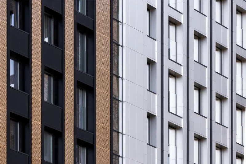 Начаты работы по облицовке фасадов. На низкоэтажных секциях выполняется укладка клинкерной плитки — экологичного и долговечного материала. На высотных секциях параллельно проходит монтаж фасада с использованием алюминиевых кассет, что придаст архитектуре комплекса технологичный облик.