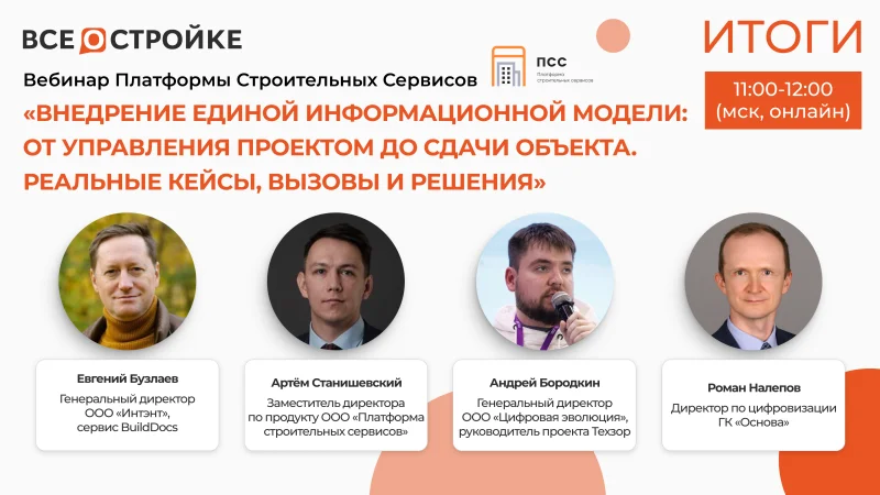 18 января «ВСЁ О СТРОЙКЕ» и Платформа Строительных Сервисов (ПСС) провели вебинар на тему: «Внедрение единой информационной модели: от управления проектом до сдачи объекта. Реальные кейсы, вызовы и решения».