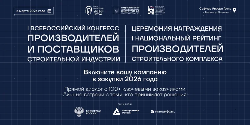 5 марта 2026 года в Москве состоится I Всероссийский конгресс производителей и поставщиков строительной индустрии. Мероприятие станет профессиональной отраслевой площадкой, на которой директора по закупкам, тендерам, проектированию и цифровизации крупнейших строительных компаний России напрямую взаимодействуют с производителями и поставщиками, формулируют свои потребности и дают объективную оценку представленным продуктам и решениям. Об этом «Стройгазете» рассказали представители мероприятия.