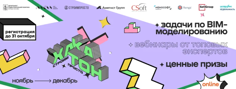 Кроме того, в рамках хакатона эксперты отрасли проведут вебинары, на которых можно подтянуть навыки в BIM-моделировании и узнать больше о том, какие софт-навыки нужны современным BIM-проектировщикам.