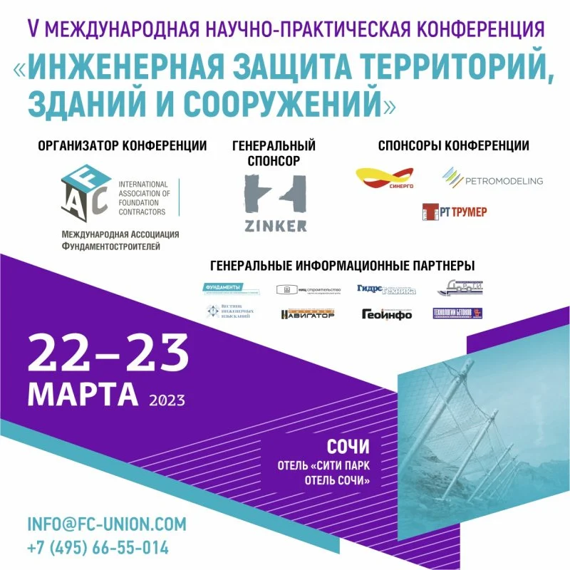 22 и 23 марта 2023 года в Сочи в отеле «Сити Парк Отель Сочи» пройдет ежегодная международная научно-практическая конференция «Инженерная защита территорий, зданий и сооружений» и выставка «Строительные технологии для инженерной защиты». Об этом «Стройгазете» сообщили организаторы конференции.