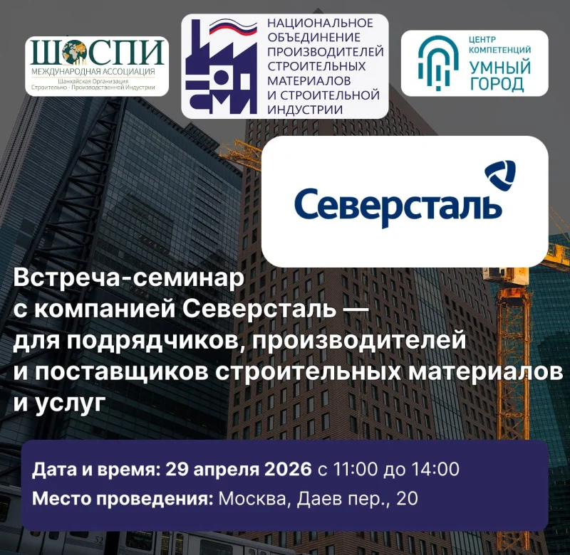 29 апреля 2026 года (СРЕДА) Ассоциация НОПСМ совместно с Международной Ассоциацией ШОСПИ и Центром компетенций «Умный город» приглашает вас на встречу-семинар с ПАО «Северсталь». Об этом «Стройгазете» рассказали представители мероприятия.