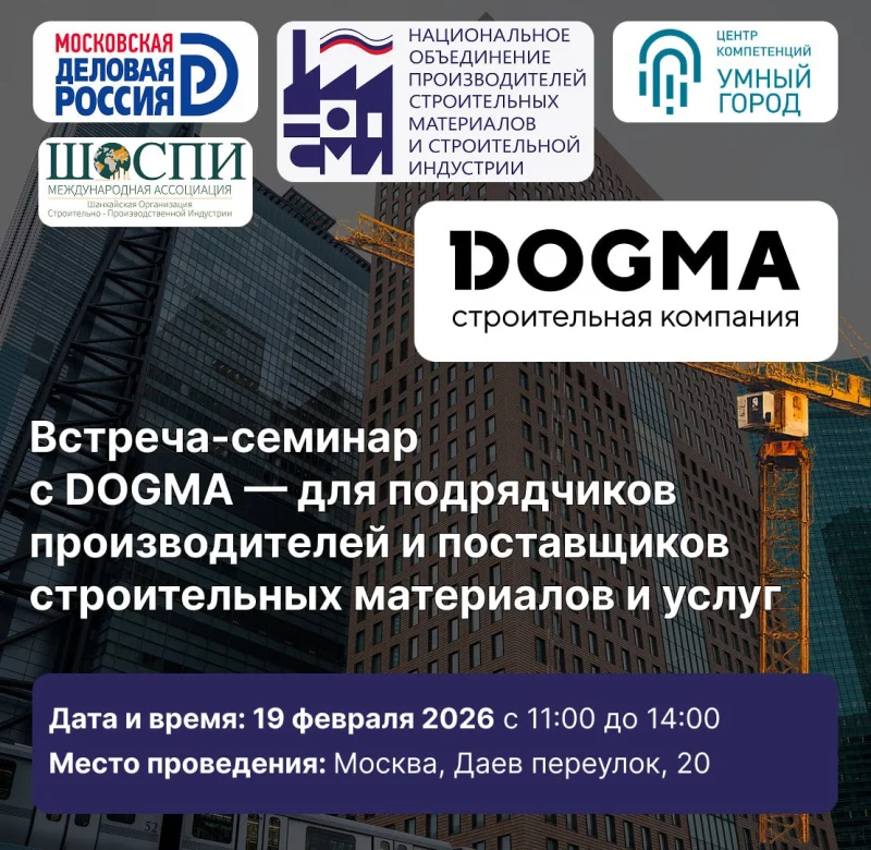 Ассоциация НОПСМ совместно с Московским региональным отделением «Деловой России», Международной Ассоциацией «ШОСПИ» и Центром компетенций «Умный город» приглашает участников отрасли на встречу-семинар с федеральным девелопером DOGMA. Об этом «Стройгазете» рассказали представители мероприятия.
