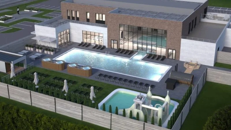 Оздоровительный центр будет состоять из закрытой площади с несколькими бассейнами, различными типами бань и всей необходимой велнесс-инфраструктурой, а также уличной зоны с термальным круглогодичным бассейном, температура воды в котором будет поддерживаться на уровне 30 градусов независимо от погодных условий.