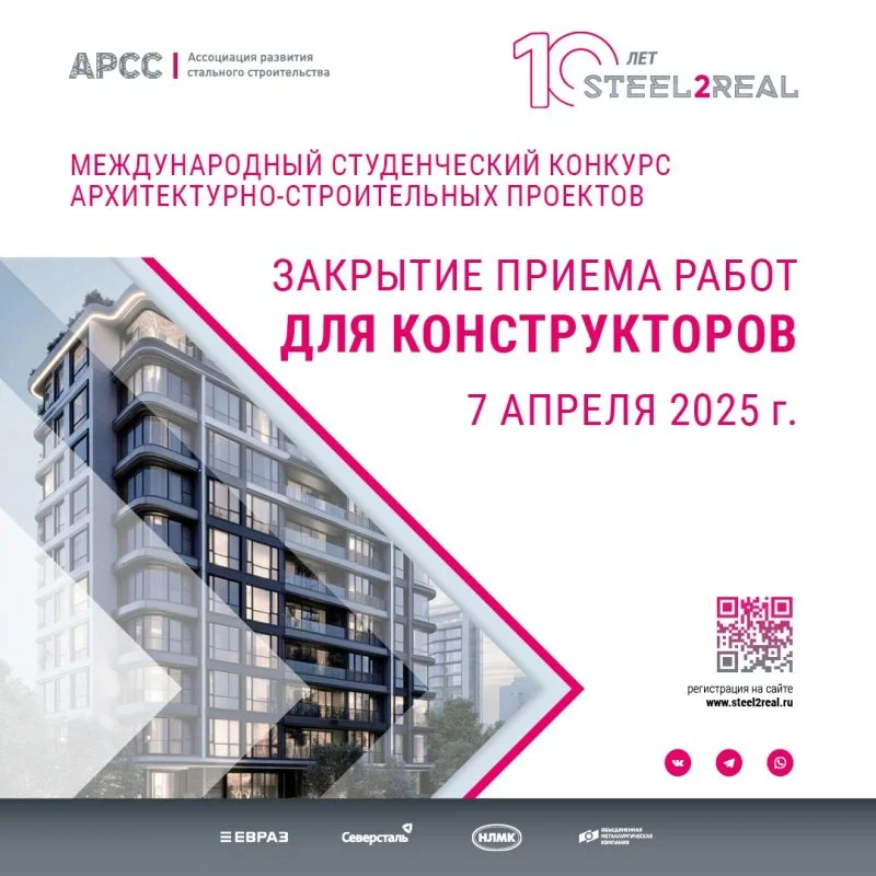 Совсем скоро, 7 апреля 2025 года, завершится прием работ в конструкторской номинации Международного студенческого конкурса архитектурно-строительных проектов Steel2Real. Об этом «Стройгазете» сообщили организаторы конкурса.