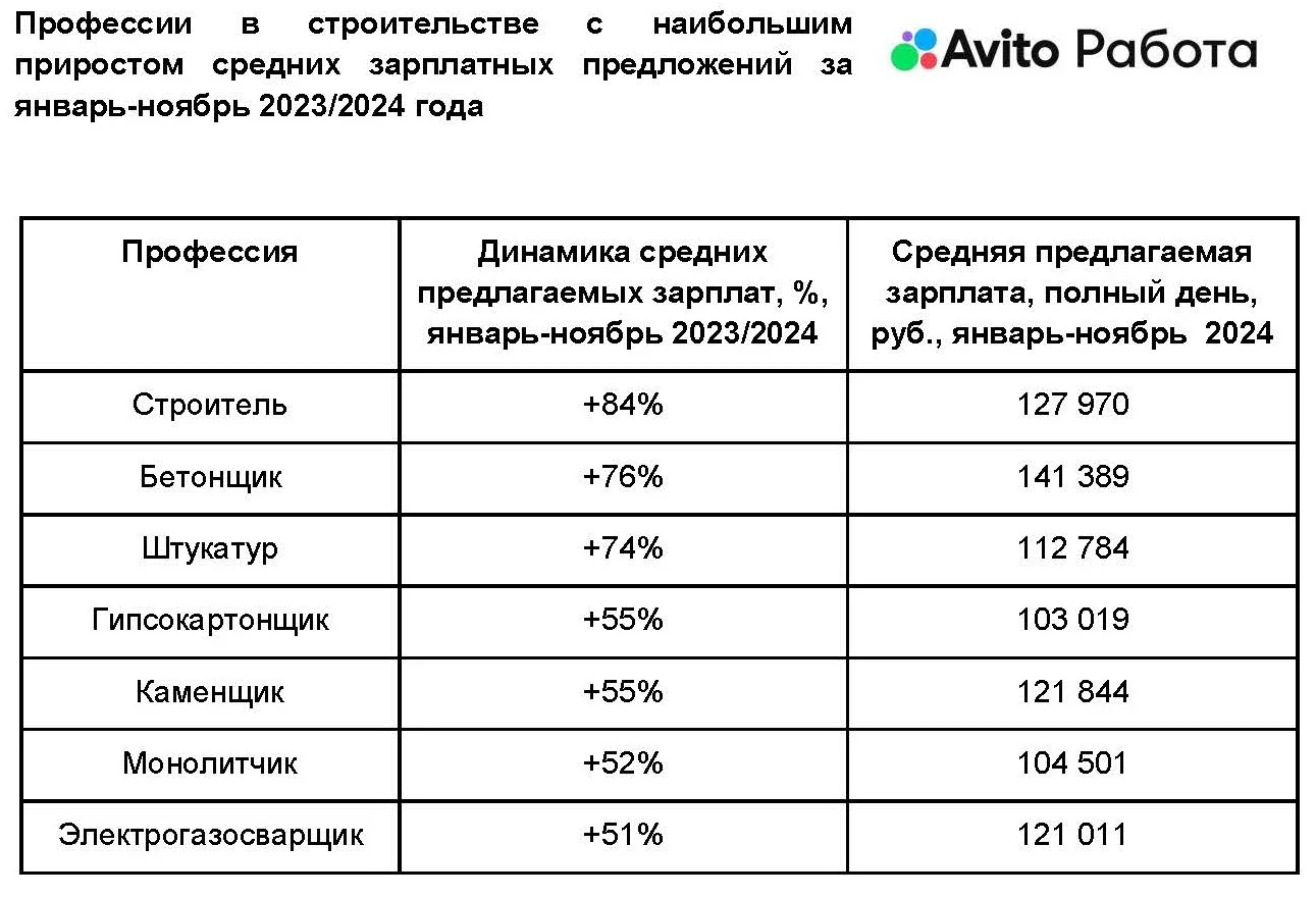 За год прирост зарплатных предложений для новых сотрудников в строительной сфере составил 47%. Об этом «Стройгазете» сообщили в пресс-службе платформы «Авито Работа», которые подвели итоги рынка труда за январь-ноябрь 2024 года.