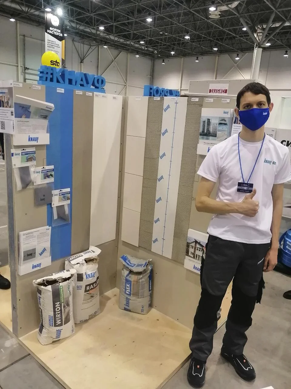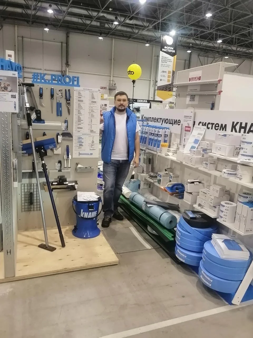 В выставочном пространстве Экспоцентра КНАУФ представил различные комплектные системы и продукты, в том числе новую краску для стен и потолков КНАУФ-Вайсванд, монтажную пену и клей-пену КНАУФ, фирменные комплектующие и инструмент.