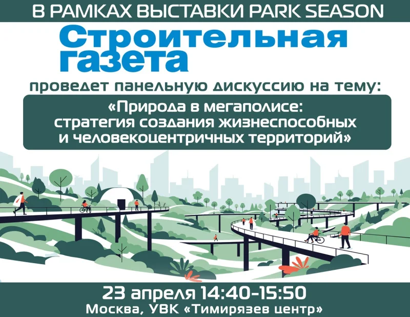 В рамках 7-ой Международной выставки-конференции ParkSeason Expo 2026 ведущее отраслевое издание «Строительная газета» проведет сессию «Природа в мегаполисе: стратегия создания жизнеспособных и человекоцентричных территорий». Мероприятие состоится 23 апреля 2026 года в 14:40-15:50 в конференц-заде «Лекторий» УВК «Тимирязев центр» в Москве.