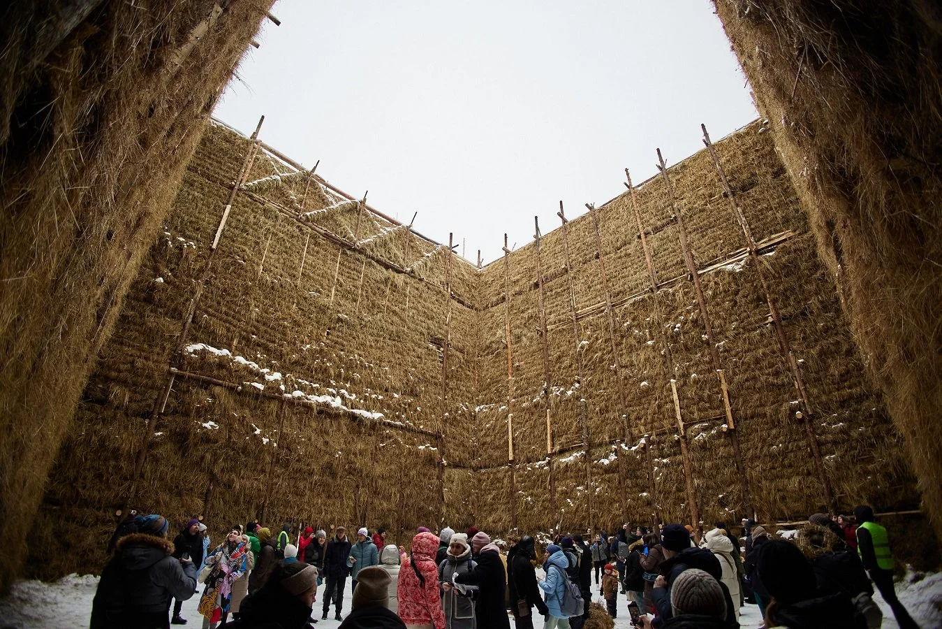 Как рассказали архитекторы, объект полон символизма: стены 19-метровой высоты собраны из различного мусора, найденного в округе – старых дверей, палок, ненужных деревяшек – всего, от чего мы стараемся избавиться, из того, что мешает нам видеть красоту мира. В этом смысле «большой огонь Никола-Ленивца» очищающий безо всяких метафор. Убрать физический мусор – дело планетарной важности.