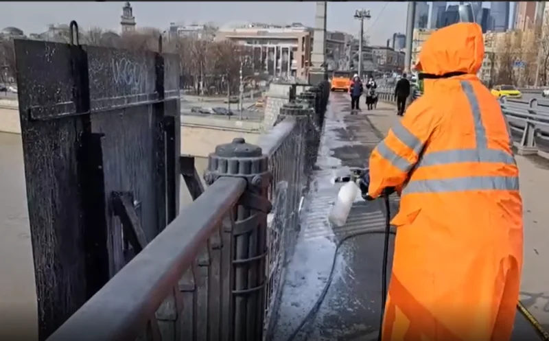 Заместитель мэра пояснил, что работы включают в себя очистку и промывку конструктивных элементов, бетонных, металлических и стеклянных поверхностей, перильных ограждений, лестничных сходов, при необходимости будет выполнена локальная окраска.