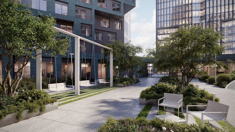 Участок разделен на общедоступные пространства и приватную внутридворовую часть жителей STONE Rise. На благоустроенной территории внутреннего двора центральным акцентом станет многоуровневая детская площадка. Мультиформатное пространство с зонированием для разных возрастов включает в себя горку, качели, лазательные элементы, бизиборд для развития творческих навыков, а также интерактивную песочницу, где дети смогут развивать пространственное мышление и проводить раскопки. Для взрослых на территории жилого комплекса предусмотрены тихие места отдыха и павильоны для работы на открытом воздухе или спортивной активности. Зоны благоустройства логично связаны пешеходными дорожками и формируют насыщенный путь от единого гранд-лобби до входных групп каждого жилого корпуса.