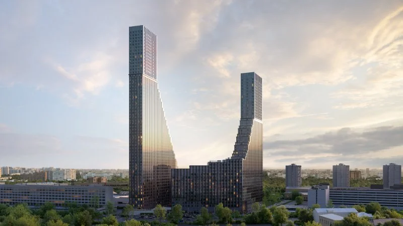По задумке архитекторов, две зеркальные башни высотой 155 и 197 метров (45 и 58 этажей) смещены друг относительно друга, что придает дополнительный эффект движения. Концепция их фасадов строится на игре света и тени, поэтому выбраны минималистические решения, при которых будет использоваться один тип стекла. На две трети высотки получат ступенчатую конструкцию, на образовавшихся уступах появятся приватные террасы, тоже имеющие по периметру стеклянное ограждение.