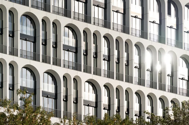Арка – дугообразная сводчатая конструкция, которую архитекторы начали использовать еще во II тысячелетии до нашей эры. Трудно найти декоративный элемент, получивший столь широкое мировое признание. В средние века и эпоху возрождения стали появляться здания, полностью обрамленные арками, в частности, венецианские палаццо. Нестареющее изящество этих дворцов вдохновило архитекторов «Цимайло Ляшенко и Партнеры» и французское бюро Antonini Darmon на создание клубного дома Brodsky (Хамовники, ЦАО) для девелоперской компании Vesper. Рисунок фасада представляет собой комбинацию арок трех видов различных по ширине и высоте. Со стороны набережной фасад выглядит торжественным, со стороны двора — более спокойным. Самые большие арки являются окнами гостиных и смотрят на набережную, в то время как окна спальных зон квартир выходят во внутренний двор. Оформление лобби повторяет элементы интерьера. Корпус прорезает одна из крупнейших в Москве арок высотой 15 метров, связывающая придомовую территорию с набережной.